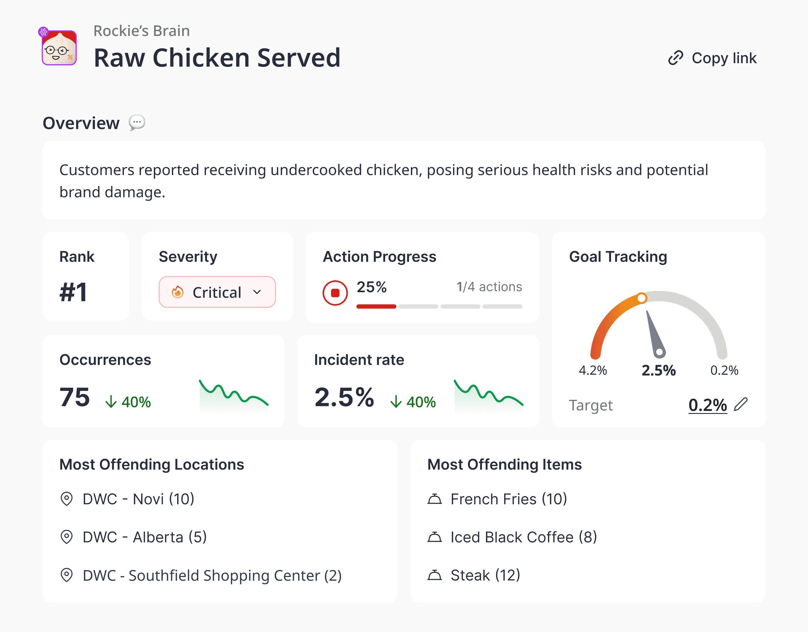 Improve Operational Excellence | Paris Baguette deployed post-visit surveys and sentiment analysis to understand satisfaction trends at the store level. With nearly 1,900 customer interactions analyzed, the team could act quickly on what mattered most—driving up CSAT by 41% in just three months. |