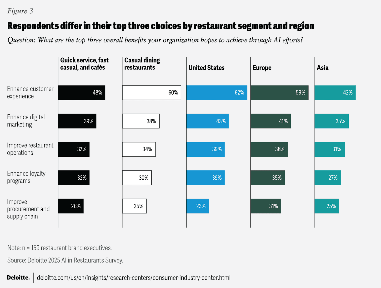 The Deloitte 2025 AI in Restaurants Survey interviewed 150 restaurant brand executives about the state of AI in the restaurant industry. Several key insights stand out from this report: