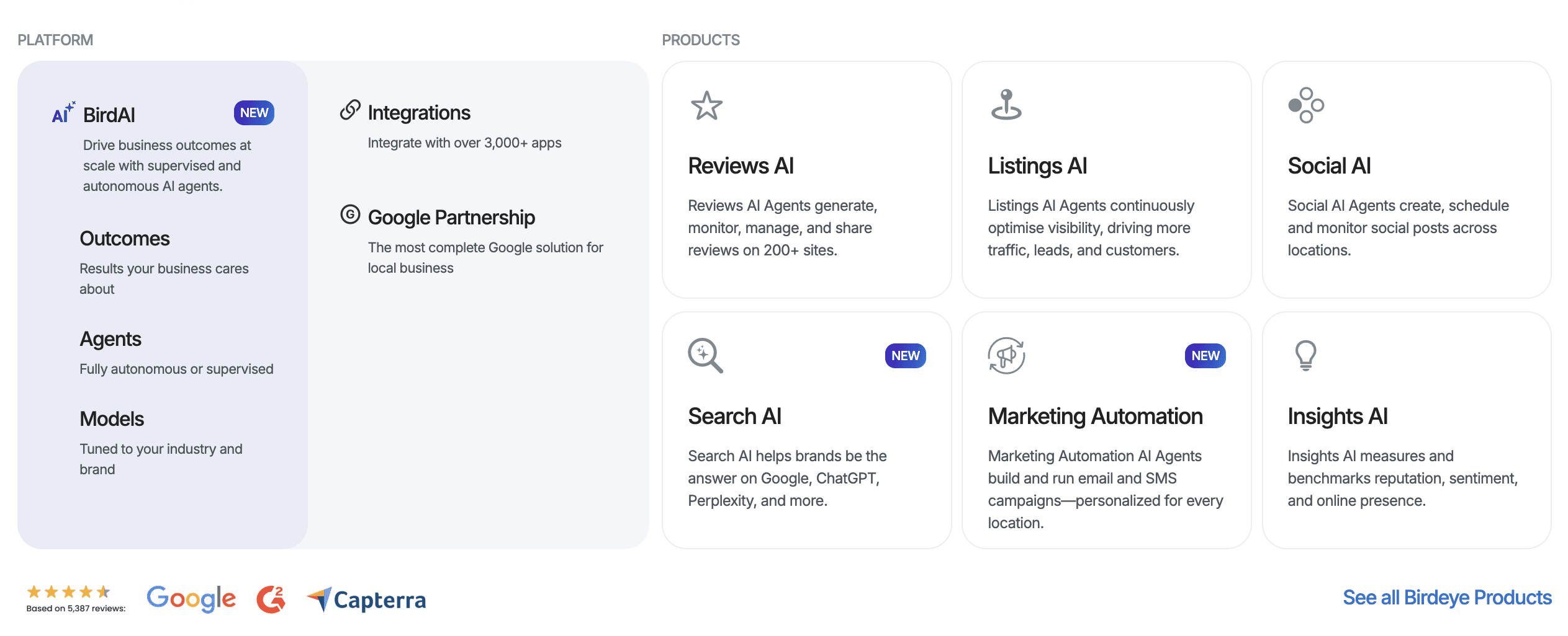 Birdeye is one of the most established names in reputation management, serving over 150,000 businesses globally. It combines review management, listings, messaging, social media, and surveys into a single dashboard.