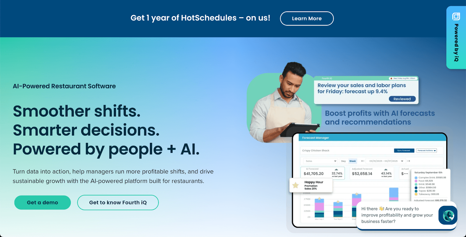 HotSchedules, part of the Fourth restaurant operations suite, is designed for multi-unit and enterprise restaurant groups that require AI-driven labor forecasting and advanced workforce performance tracking.