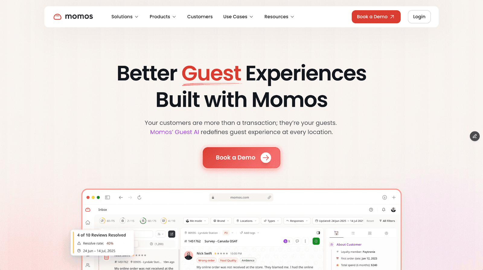 Momos is a guest experience and customer satisfaction analytics platform designed for restaurants to measure, analyze, and act on guest feedback in real time to improve service quality and increase repeat business.