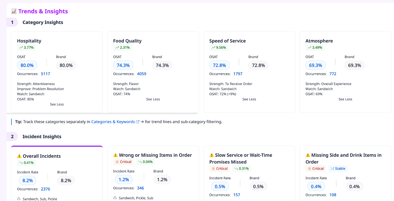 Look for recurring patterns and turn them into actions : we all know you can't make 100% of people happy, so expect negative reviews once in a while. However, if you start to see multiple reviews of specific problems like slow, rude, not friendly, lack of awareness from staff, then action needs to be taken. You can leverage AI to categorize feedback (service, food, wait time, cleanliness).