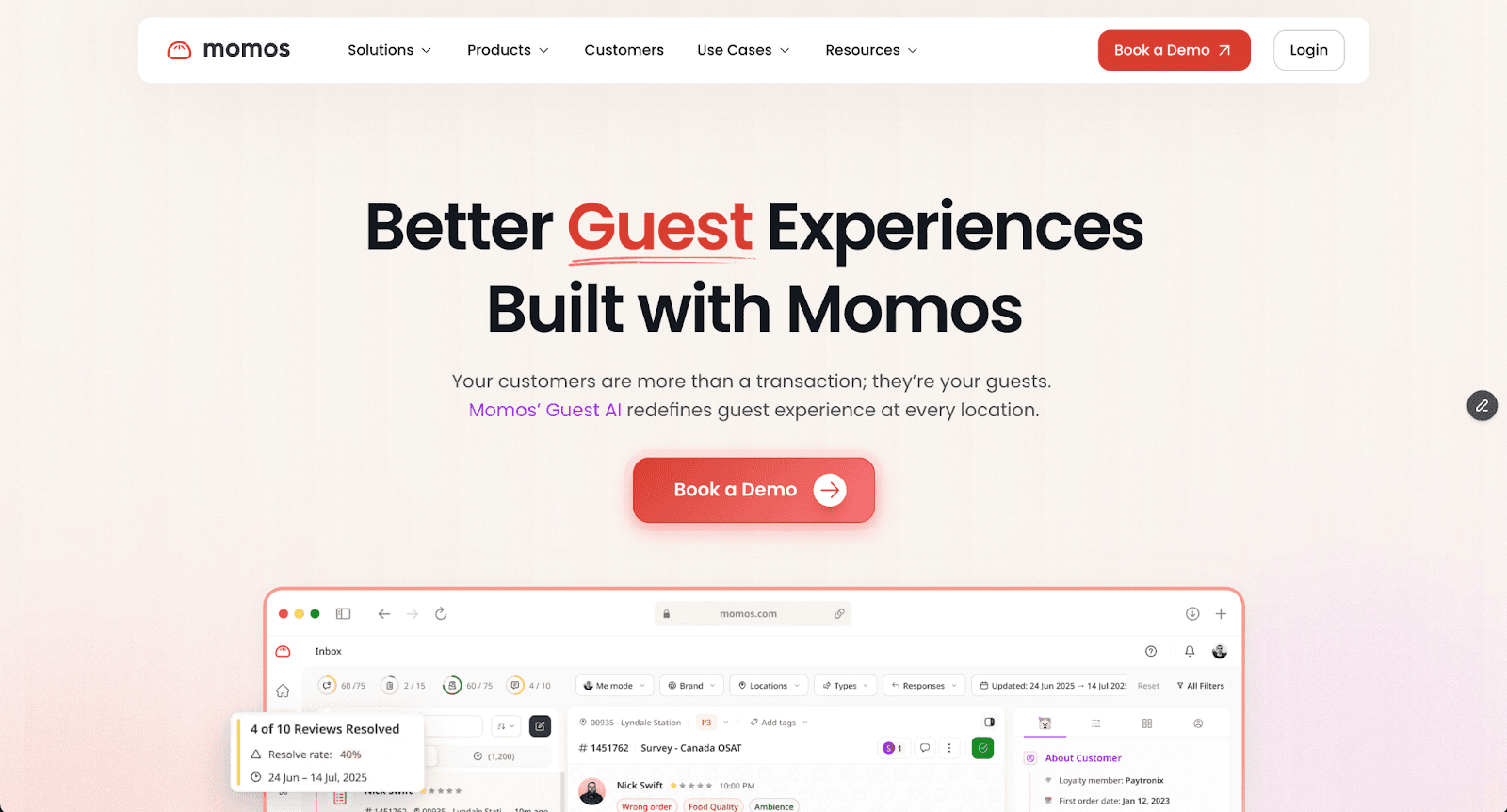 What it is: Momos is a comprehensive guest experience platform that empowers your team to deliver customer service 24/7 with AI, see guest experience analytics, and launch local marketing campaigns.