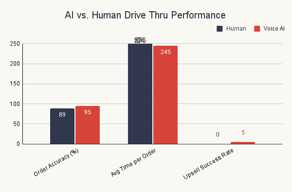 AI-powered voice ordering — using natural language processing (NLP) — is starting to outperform human staff in accuracy, speed, and upsell consistency. Companies like Presto and SoundHound are leading deployments across brands like Checkers and Del Taco, replacing or augmenting order-taking staff with trained voice bots.