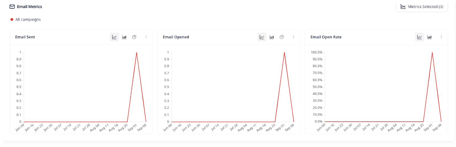 Once your campaign is live, you’ll be able to see a wide variety of performance metrics with respect to each campaign in the Outbound Campaigns Analytics dashboard. Some examples include: :