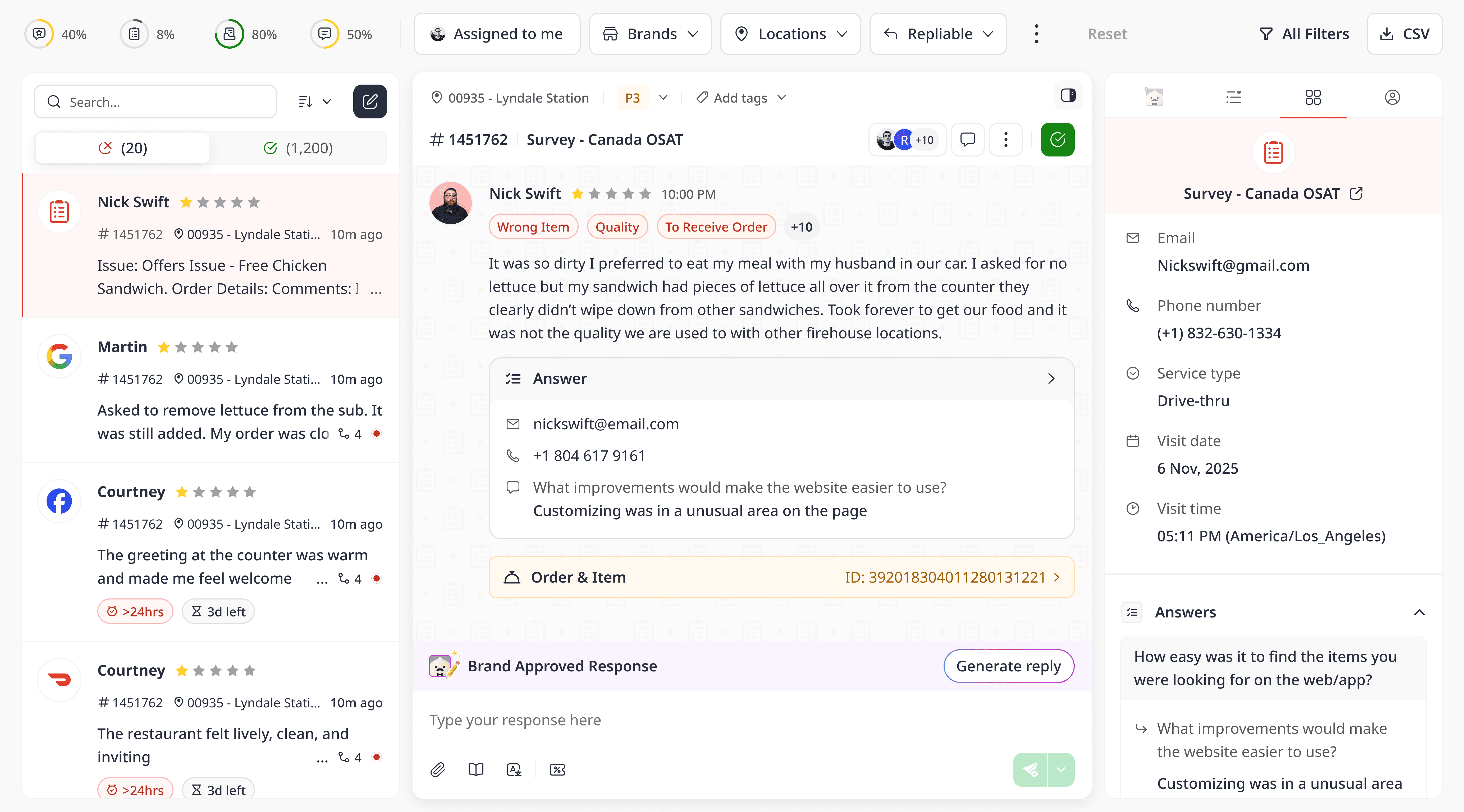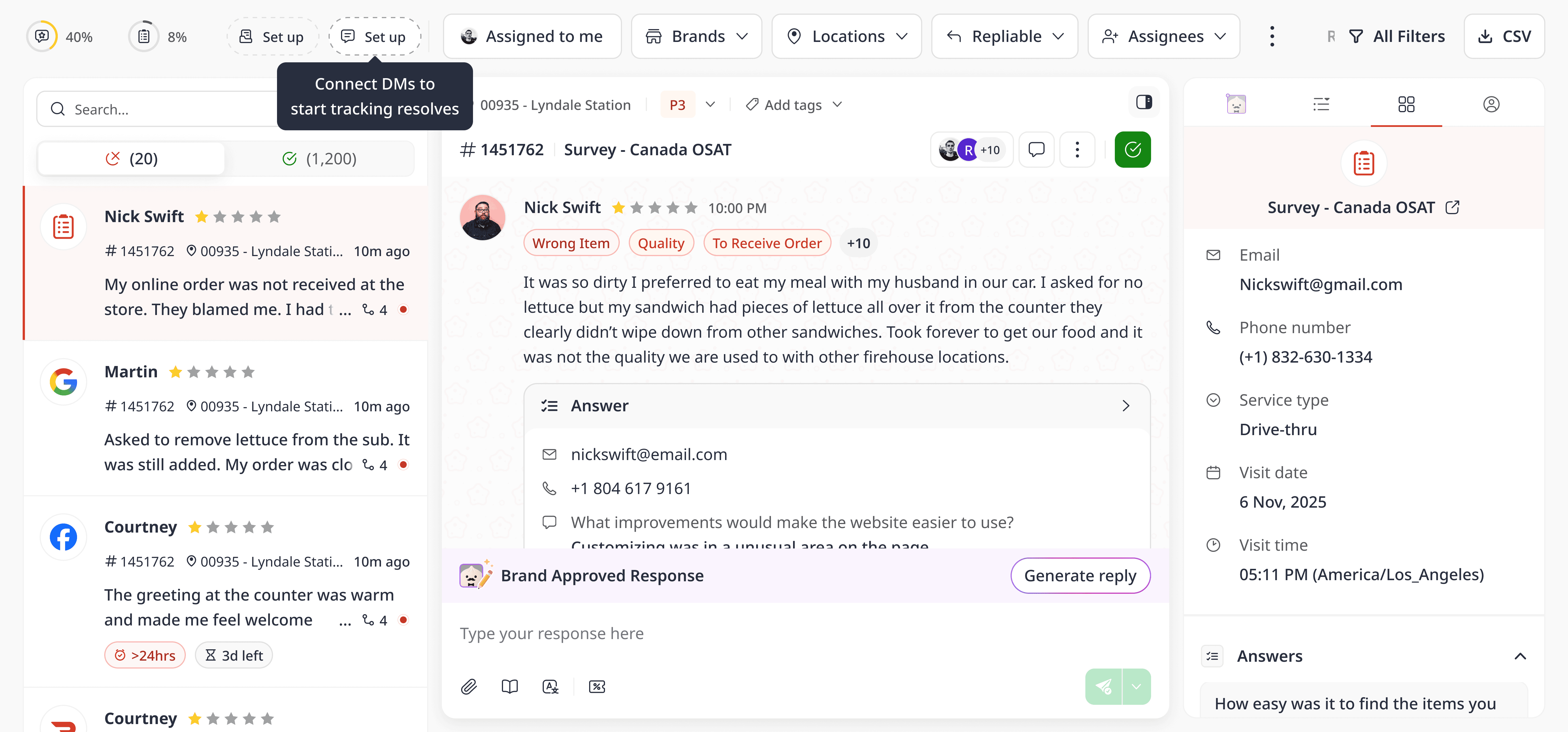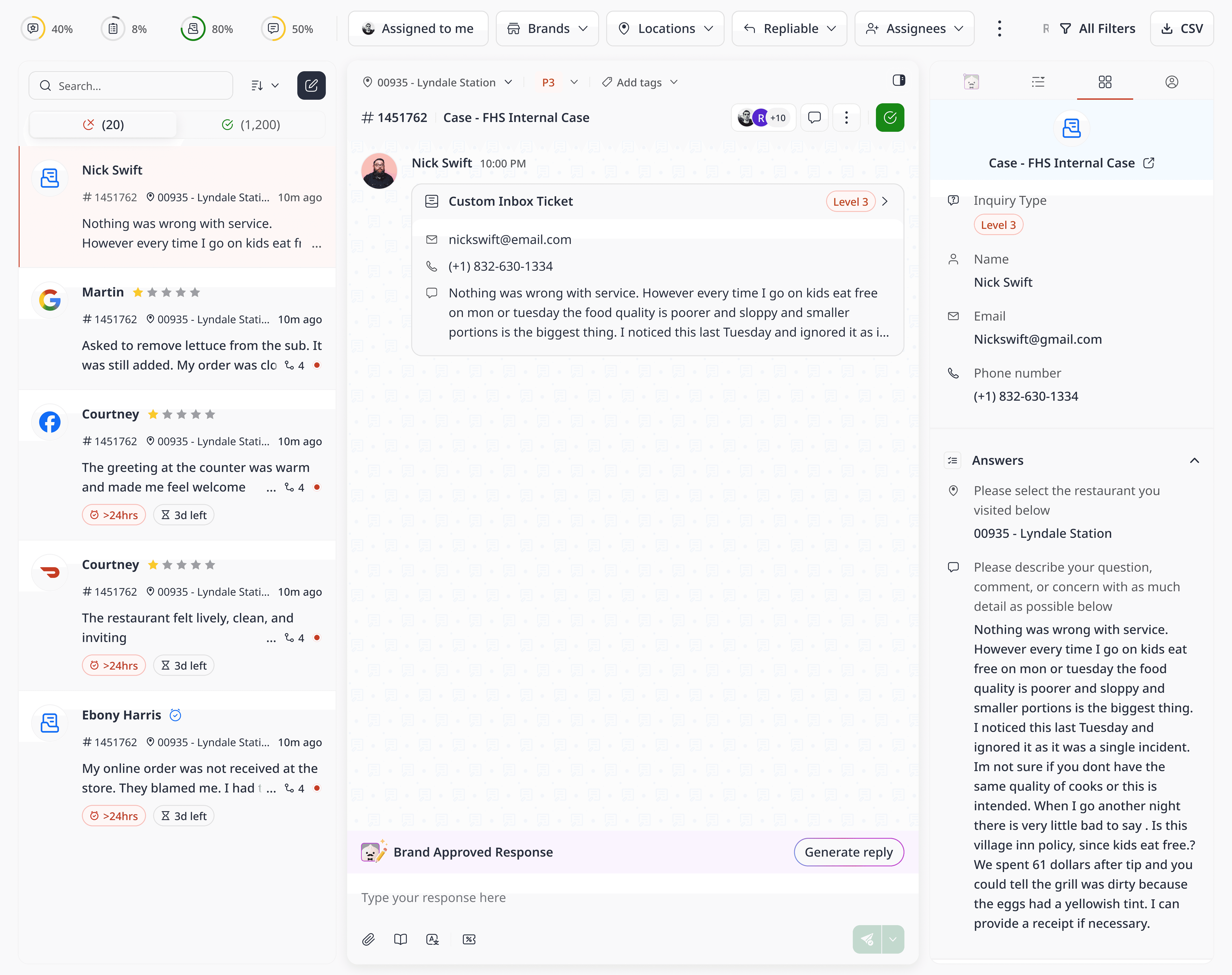 Managers can quickly scan the Unified Inbox to see priority issues, unresolved tickets, and high-impact conversations across locations. What’s more, they can also assign tasks to teammates for efficient project management.