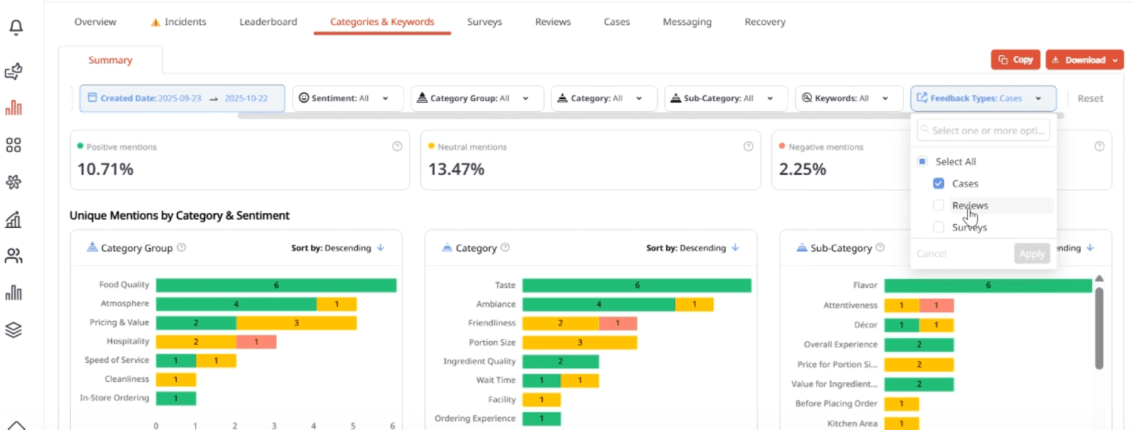 With Cases as Feedback, Momos now automatically identifies and classifies feedback-related cases within Analytics and Unified Inbox, so you can uncover trends across Incidents, Categories & Keywords, and more easily. Cases as Feedback is currently on beta. Reach out to your Customer Success or Account Manager for onboarding details.