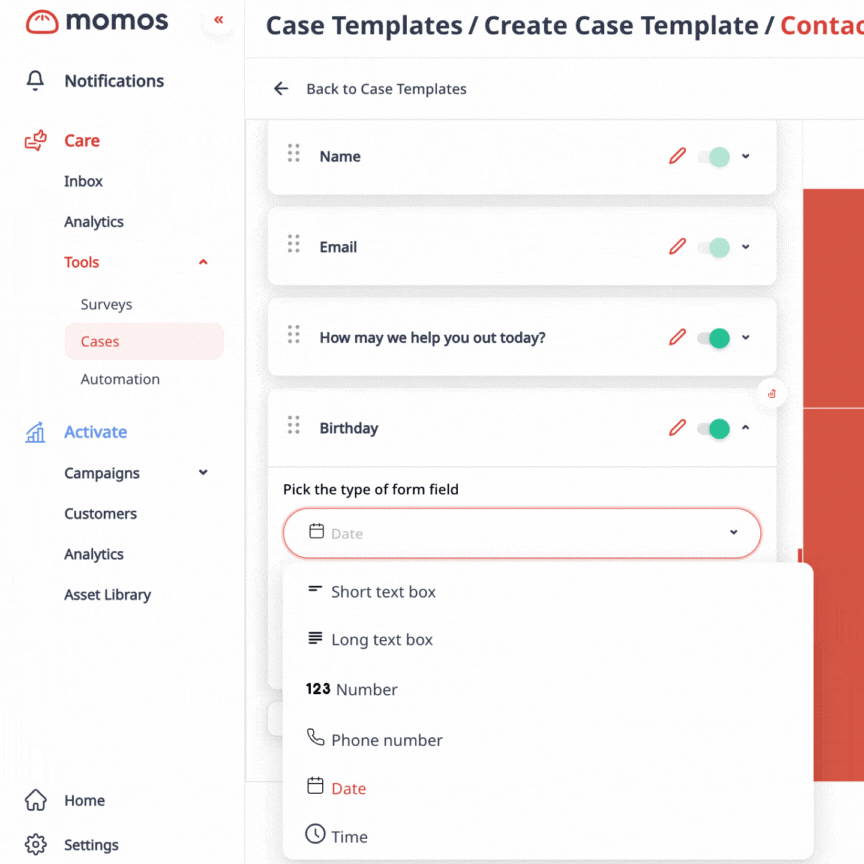You can now specify whether you want a customer’s answer to a question on a Case form to be added as the value for a trait in that customer’s profile - just like with surveys!