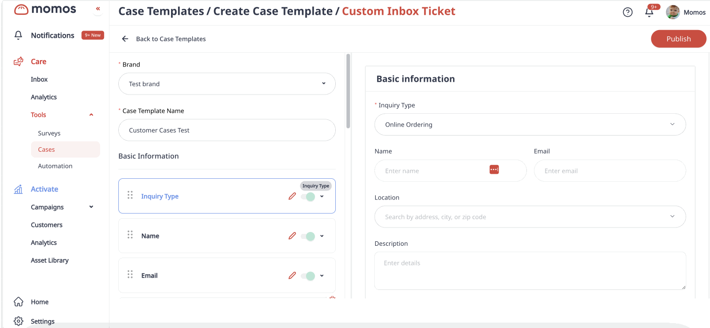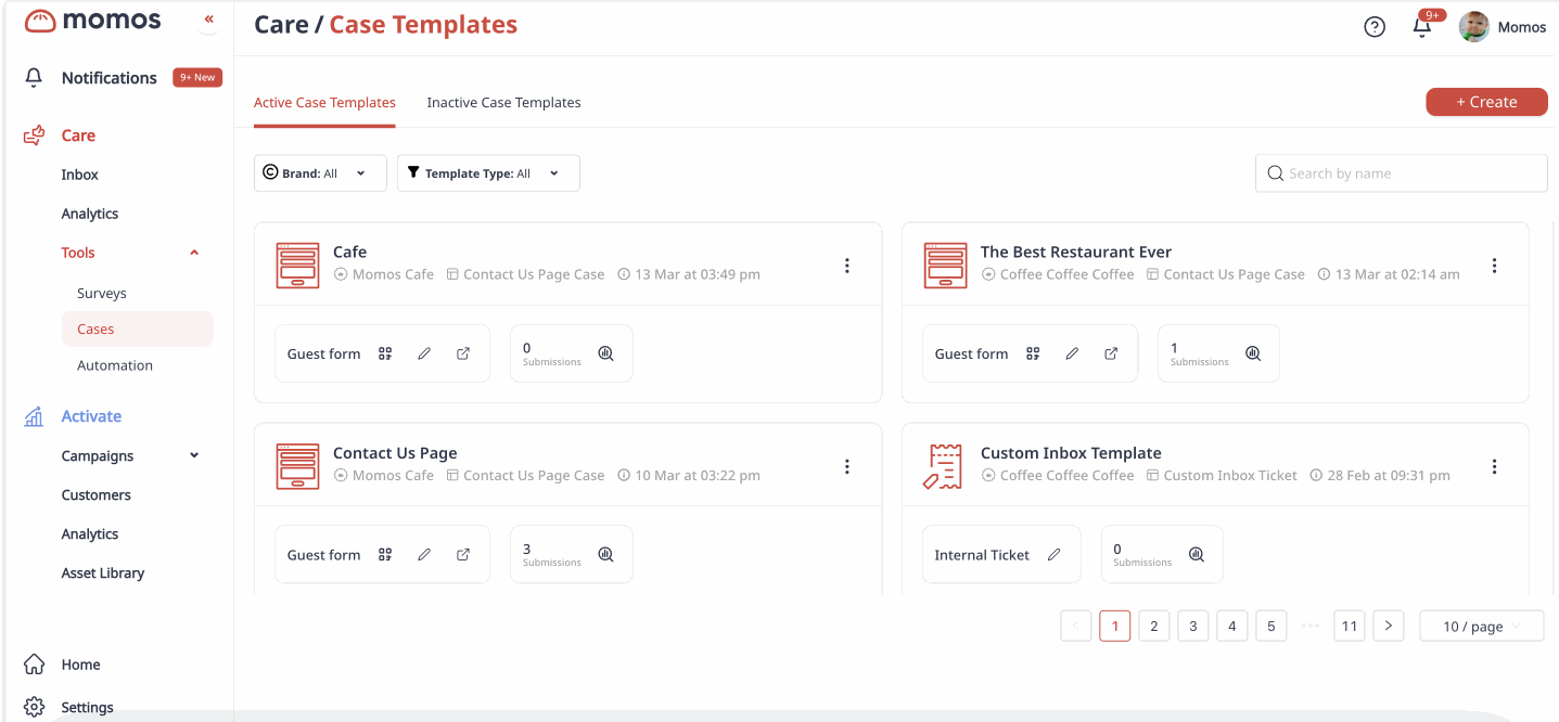 "Forms" are now "Cases," reflecting their expanded functionality. You can manage cases across multiple external channels, including email, and create custom case templates tailored to your business needs.