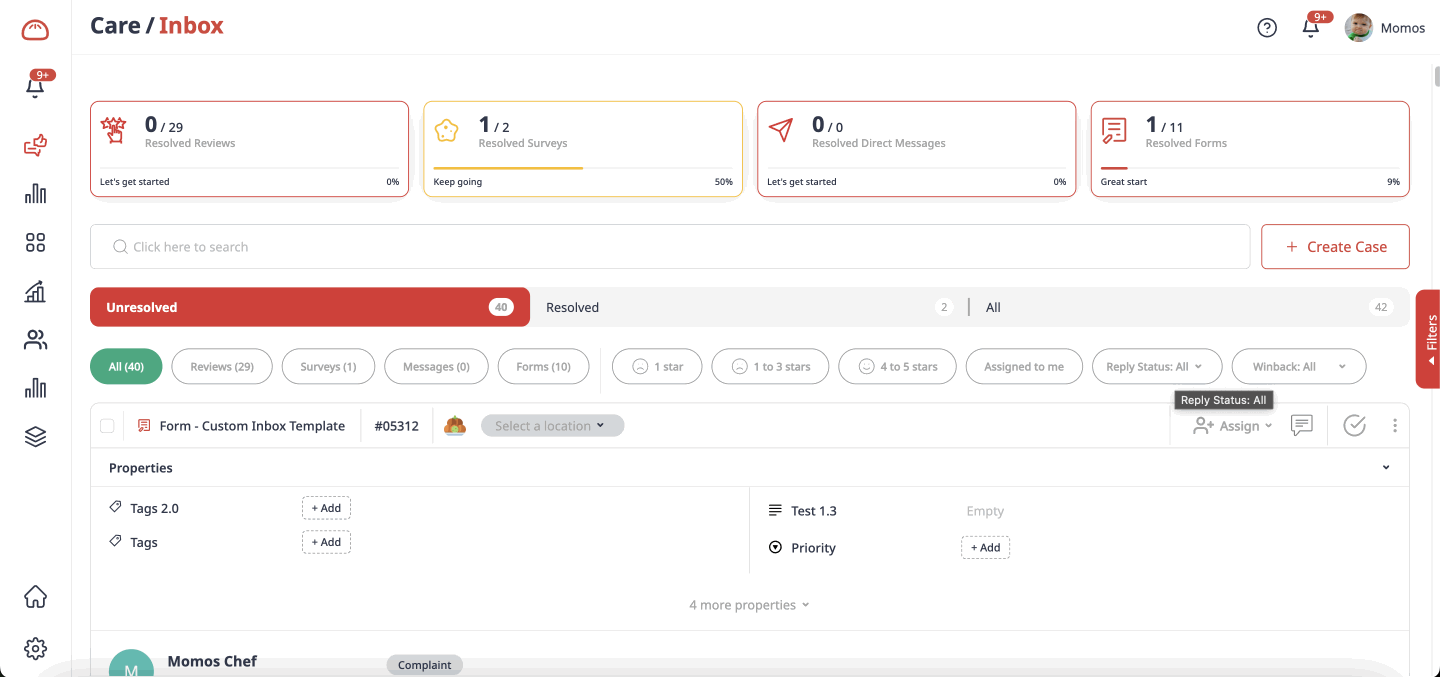 Access and manage properties directly within the Momos mobile app so you can filter and interact with feedback seamlessly wherever you are. This update enhances operational agility across the board