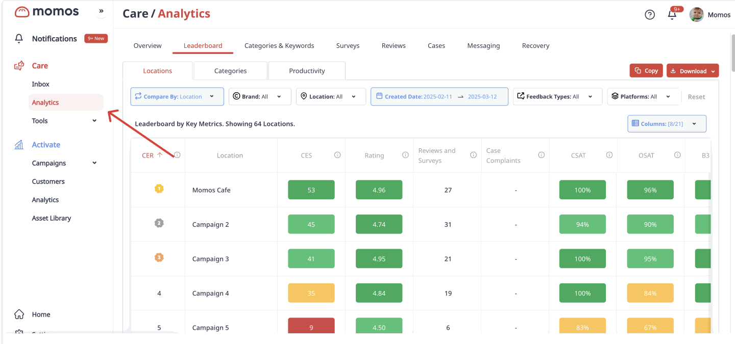 NPS data from survey “Point Scale” responses now appears in the Location Leaderboard, offering an at-a-glance breakdown of customer satisfaction across outlets.