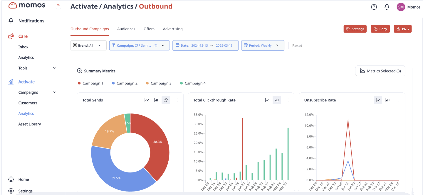 Users can copy chart links with retained filters and compare up to five campaigns simultaneously for deeper performance insights.